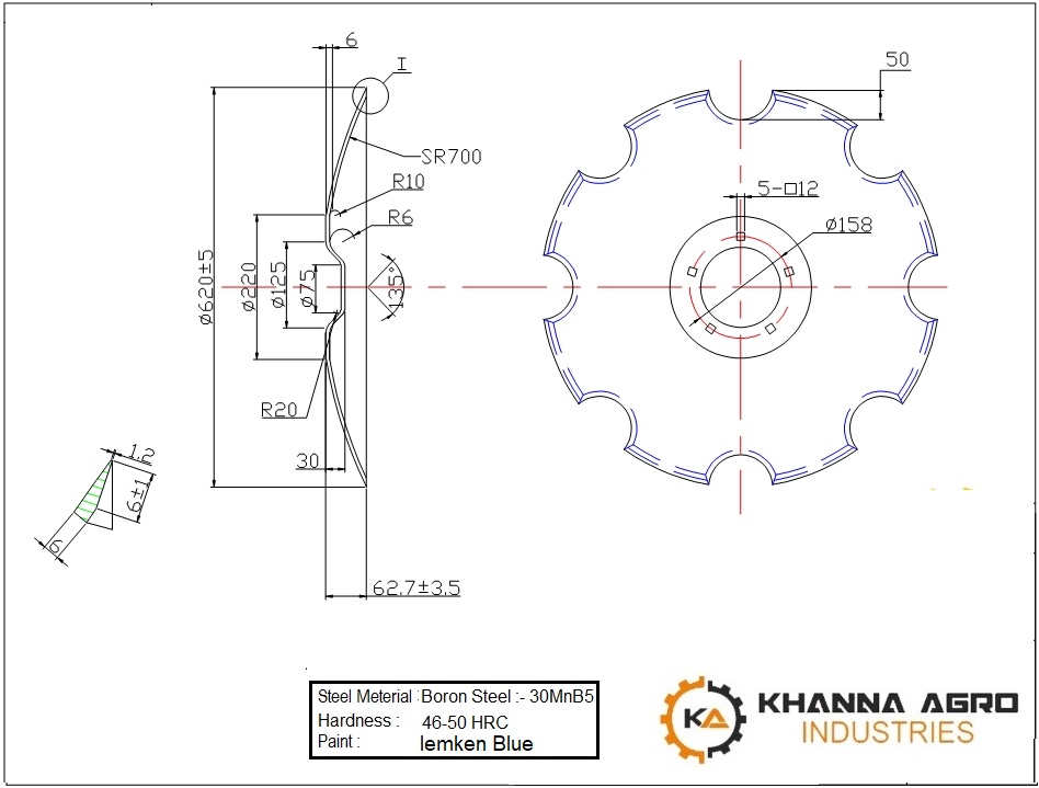 Khanna Agro Industries has gained itself as a reputed Manufacturer, Trader, and Supplier in the field of harrow disc and other agriculture equipment, Since the year 2013, we are engaged in providing a large assortment of agricultural equipment and machines and have managed to garner a dominant name in the marketplace. Plain Disc, Notched Disc, Center Flat Disc, Flat Coulter, Dome Disc, etc are the few types of Agricultural equipment that we deal in. Below is the list of Plain Disc Size.